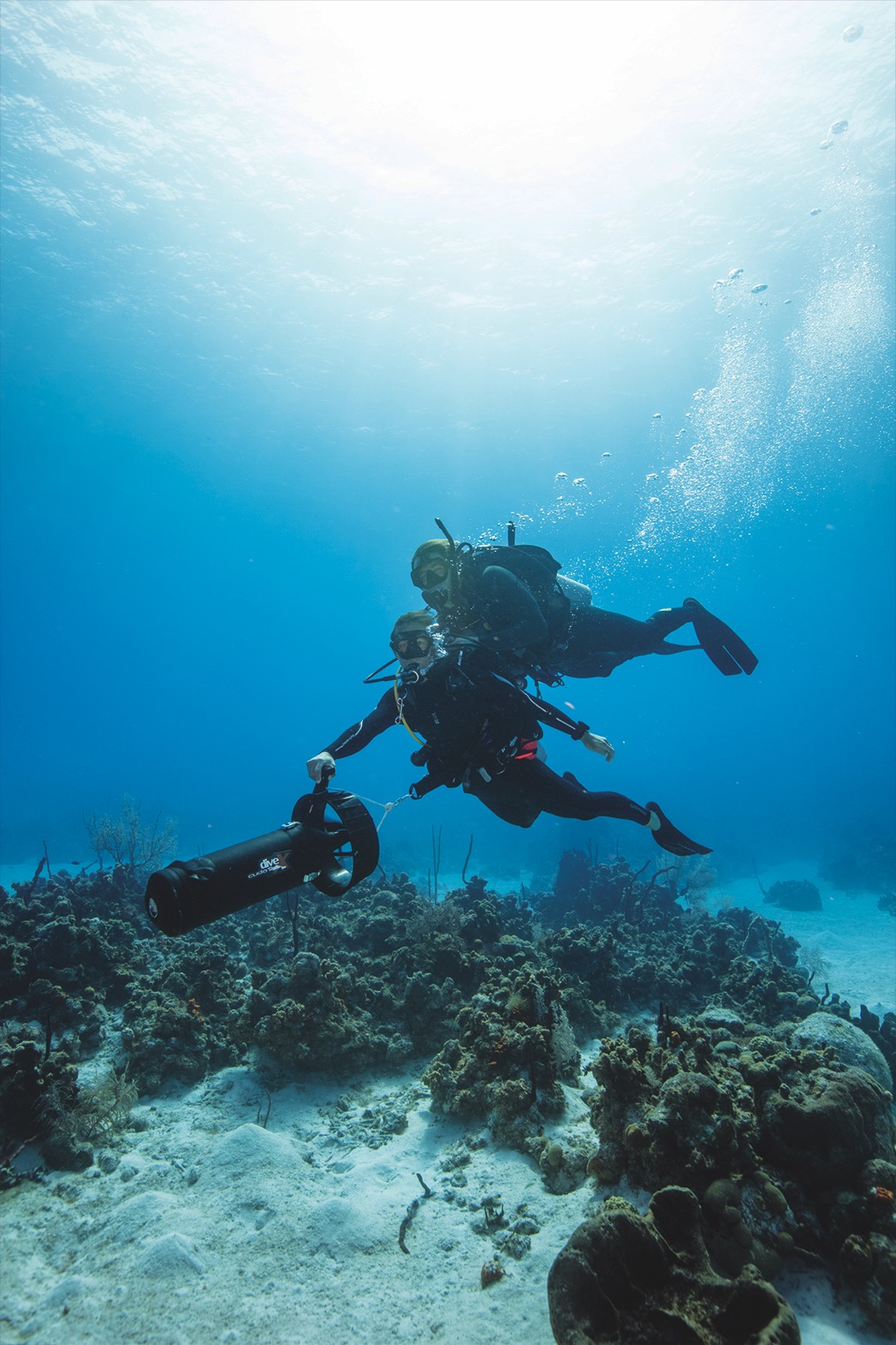 - Fly over the reef like James Bond on a DPV. Maximum exhilaration with minimum effort.